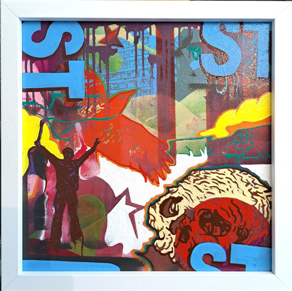 a collection of new paintings, a new direction with a stylistic personal narrative drawing from all my favourite visual influences.